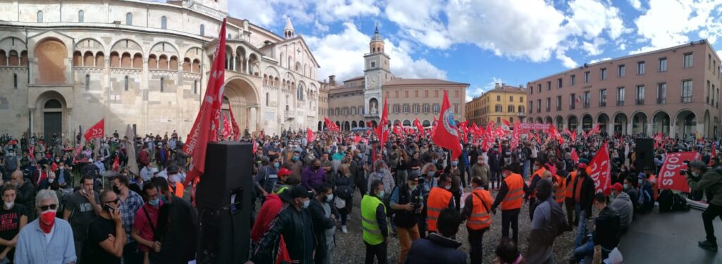 Una piazza stracolma di migliaia di lavoratori e solidali oggi ha ribadito ancora una volta e con ancor più forza che scioperare non è un reato e che i piani repressivi orditi dai padroni, dal potere politico e dai bonzi sindacali di Cgil-Cisl-Uil trovano e troveranno una resistenza diffusa e decisa, sia sui luoghi di lavoro, sia sul territorio modenese ed emiliano.