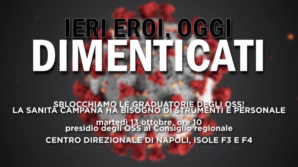 Martedì h 10.00 sotto al Consiglio Regionale con gli operatori sanitari ed i disoccupati perché la crisi sanitaria ed economica necessità di un piano di assunzioni, scorrimento graduatorie idonei e stabilizzazione.