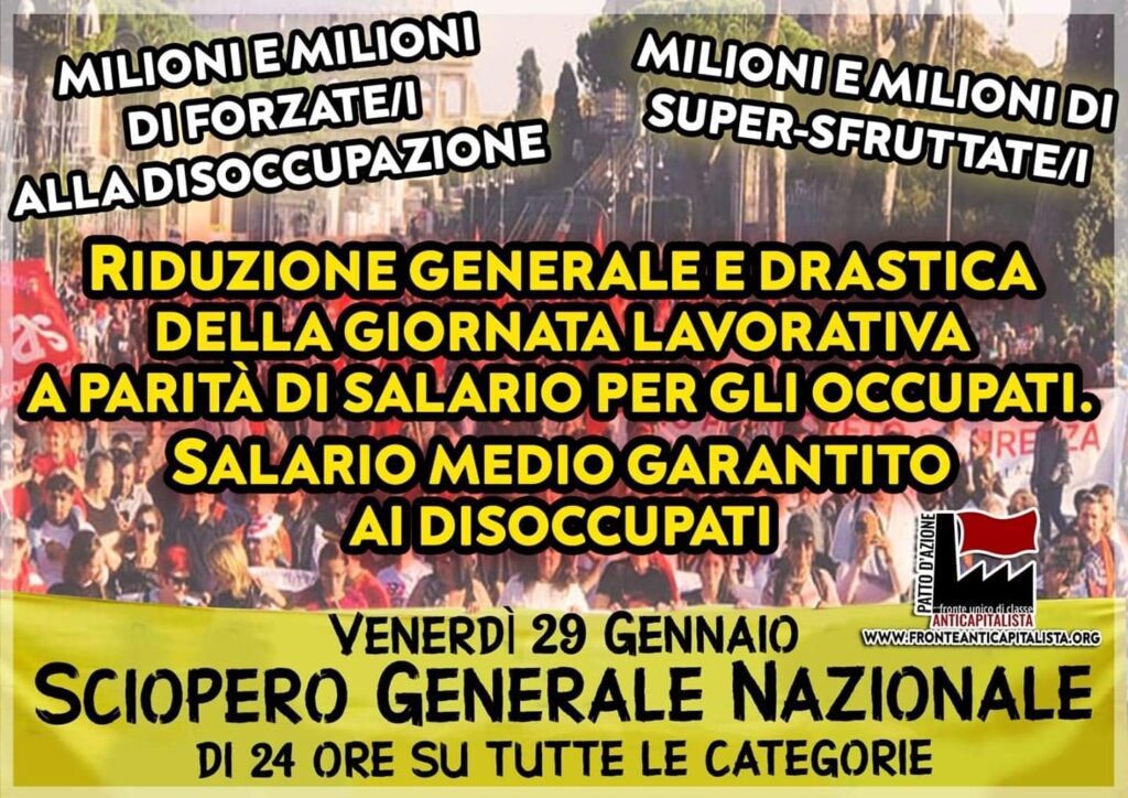 Facciamo quindi appello a tutte le realtà sociali, sindacali e politiche che condividono questa necessità, e ai singoli proletari stanchi di subire quotidianamente le politiche di sfruttamento e marginalità, a partecipare:
