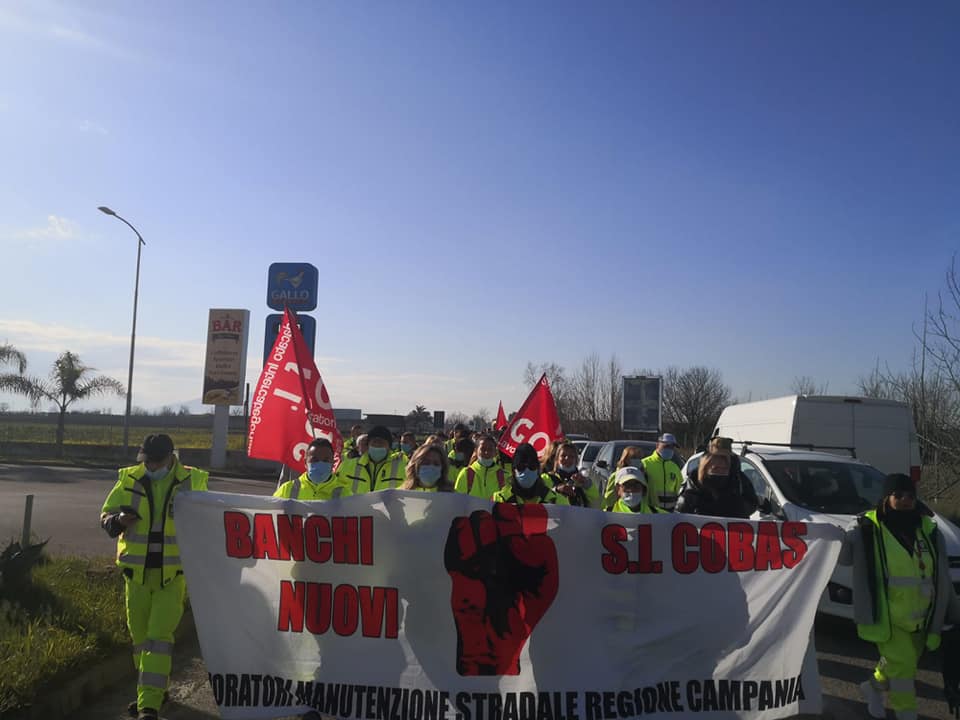 Stamattina centinaia i lavoratori del Si Cobas hanno bloccato le attività lavorative della manutenzione stradale sul lotto Napoli e Caserta.