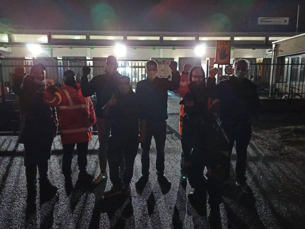 Anche questa sera una quarantina di bodyguards armati e schierati sulle strade adiacenti al magazzino FedEx-TNT di Zampieri a San Giuliano Milanese (MI) erano pronti per impedire lo sciopero ma anche questa sera l’onda in piena della classe operaia gli ha travolti e rimandati dentro ai cancelli.
