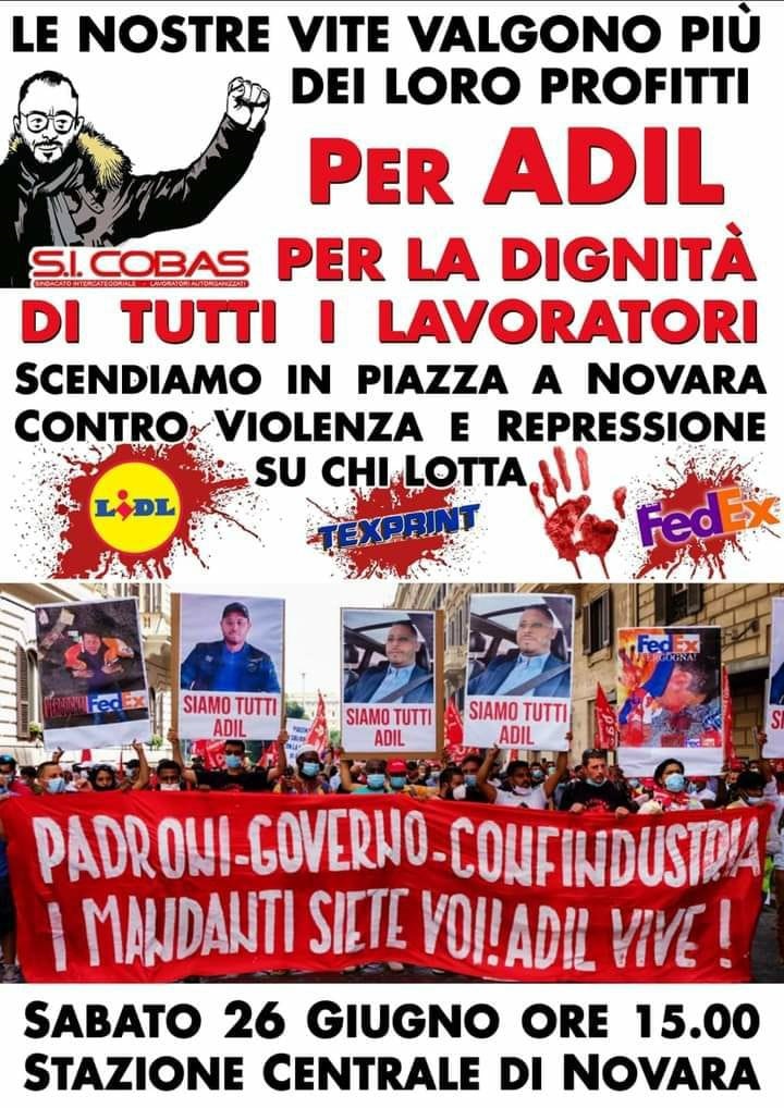 Ricordare Adil per noi significa innanzitutto proseguire quelle lotte per cui è stato costretto a sacrificare la vita: per dire basta allo sfruttamento, alla repressione degli scioperi e alle condotte antisindacali che in questi mesi si sono moltiplicate in tutta Italia e che hanno colpito principalmente il SI Cobas.