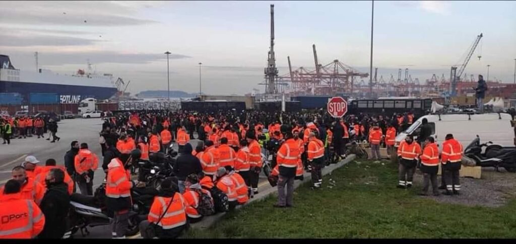 5) La due giorni di sciopero e mobilitazione del 23-24 Febbraio ha rappresentato un passo avanti nella costruzione di un vero fronte di lotta internazionale e internazionalista che impari, anche attraverso iniziative come queste, a coordinarsi e ad agire unito. Scegliere uno dei principali porti del Mediterraneo nel giorno del passaggio delle navi israeliane ZIM è stato un gesto, del quale non ignoriamo il valore comunicativo e parzialmente simbolico, che ci permette di approfondire e stringere conoscenze e rapporti con chi agisce ovunque contro le navi della ZIM, la logistica e l’industria militare.